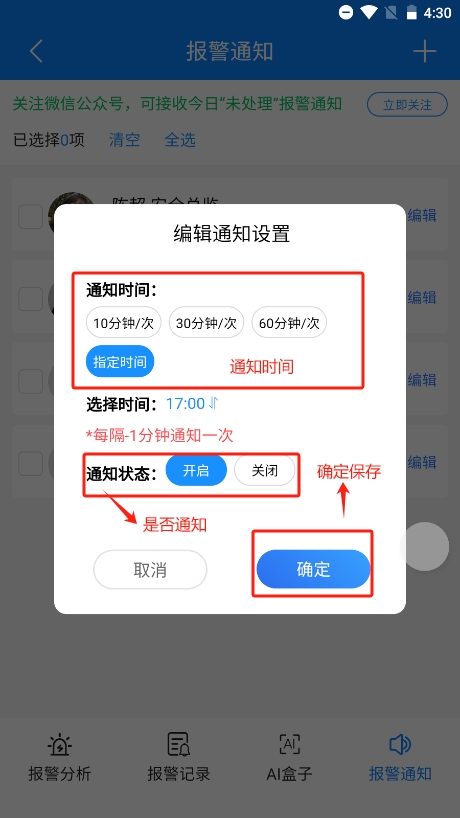 通知人员也可以在微信小程序上设置自己的通知设置