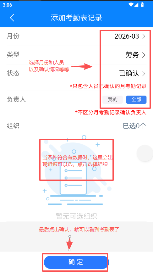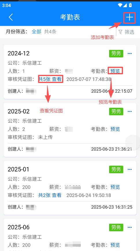 考勤表是指考勤人员确认之后,一个月统计一次考勤记录,包括正常考勤、迟到、早退、缺勤等。在APP端项目管理人员可以查看员工的考勤表。在web端项目管理人员可以查看并下载考勤表。