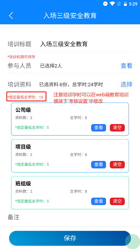 设置考核项,例如学时、签字文书和考试