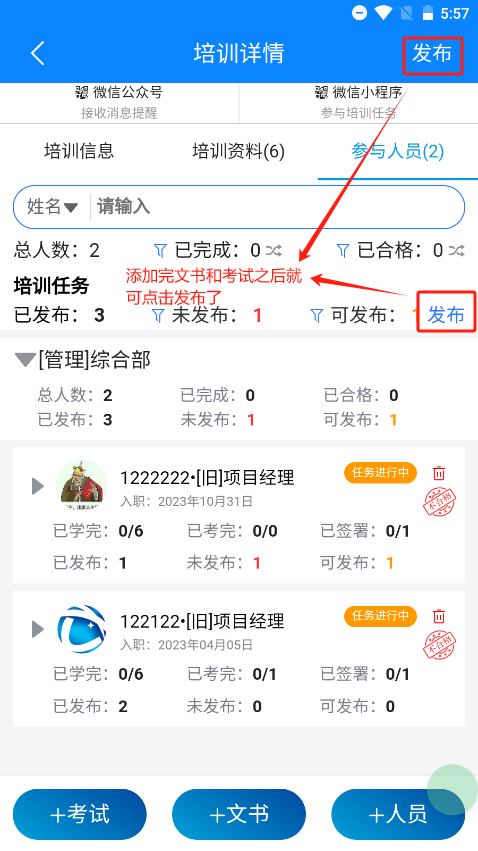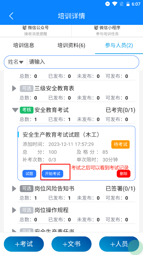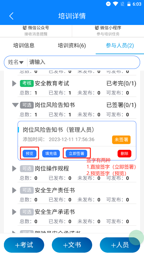 发布成功之后就可以考试和签署文书了,前提是需要学完资料
