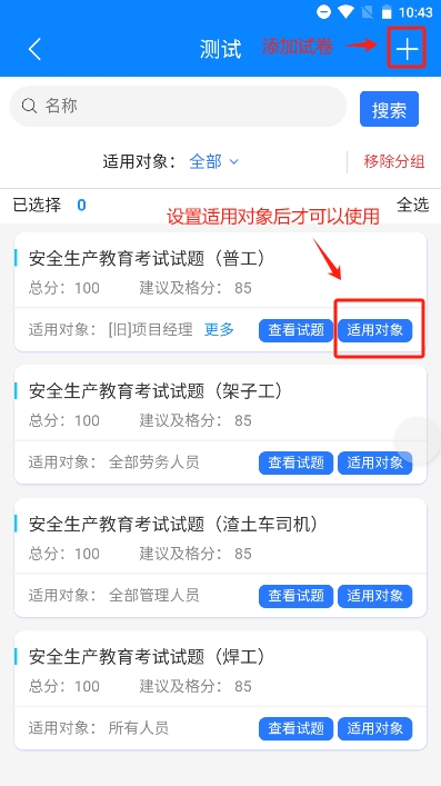 使用对象:将试卷和签字文书职务或工种进行挂钩,每个特定的职务或工种使用对应的试卷和签字文书