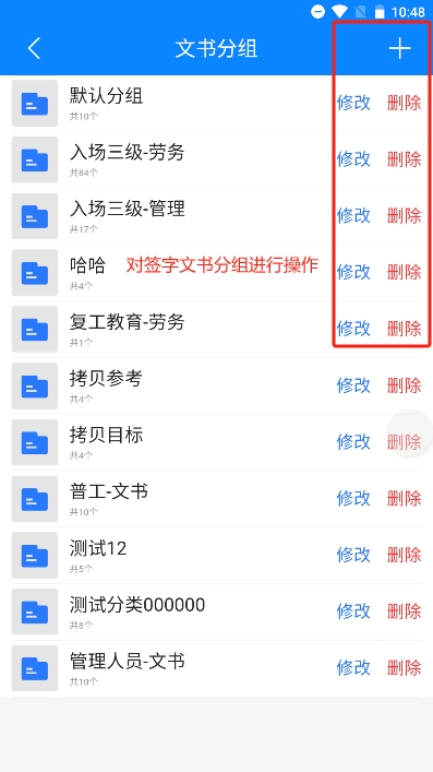 用于方便使用考试和签字,对考试和签字进行自定义分组和设置,添加培训时方便使用