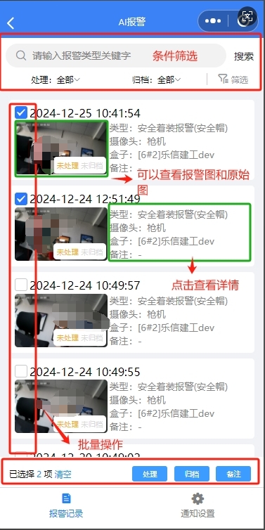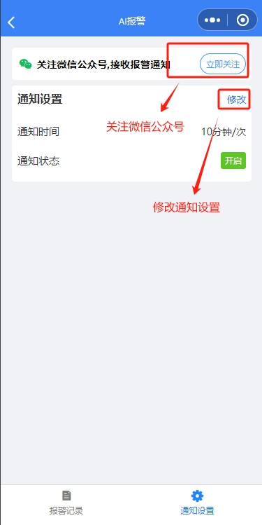 若人员想要使用小程序端AI报警,必须由管理员先从Web端或App端的“AI报警分析”模块中,将人员添加到“报警通知人”中。