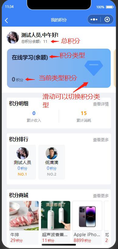不同人员积分构成不一样,积分类型也不一样。以劳务人员为例!劳务人员积分由两部分组成,在线学习和产业工人+(隐患上报)