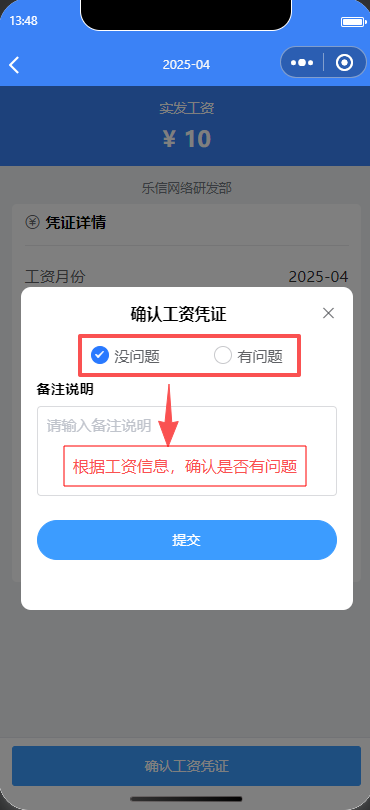 工资凭证可以查看工资相关信息,可以通过确认工资凭证的方式来确认工资发放情况。