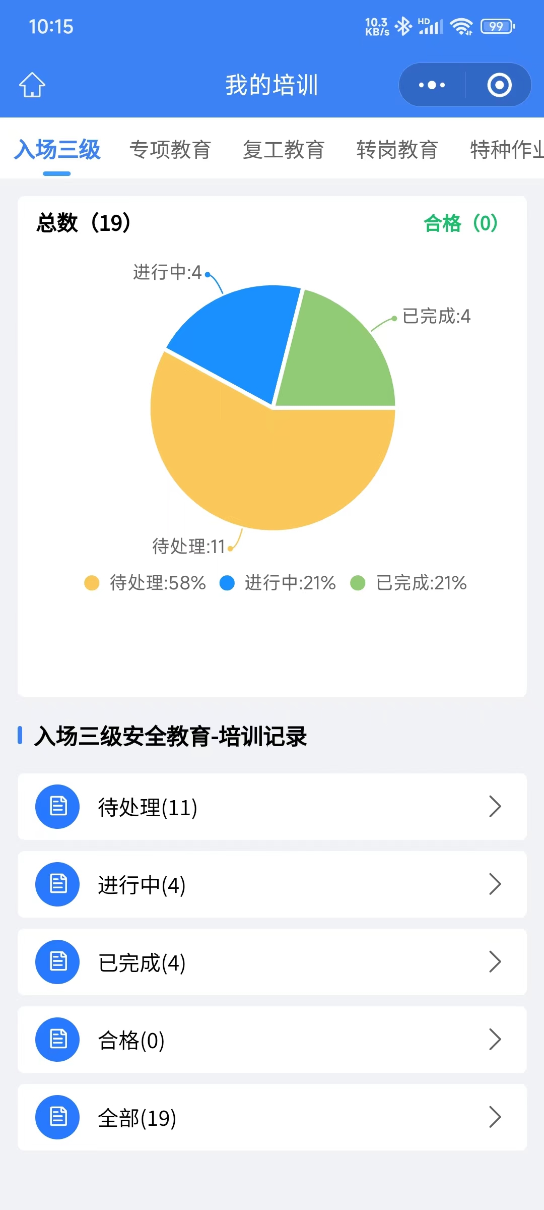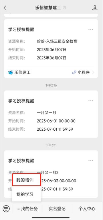 培训学习完成之后,发布的培训签和考试都可以从我的培训中点击查看和签字或考试