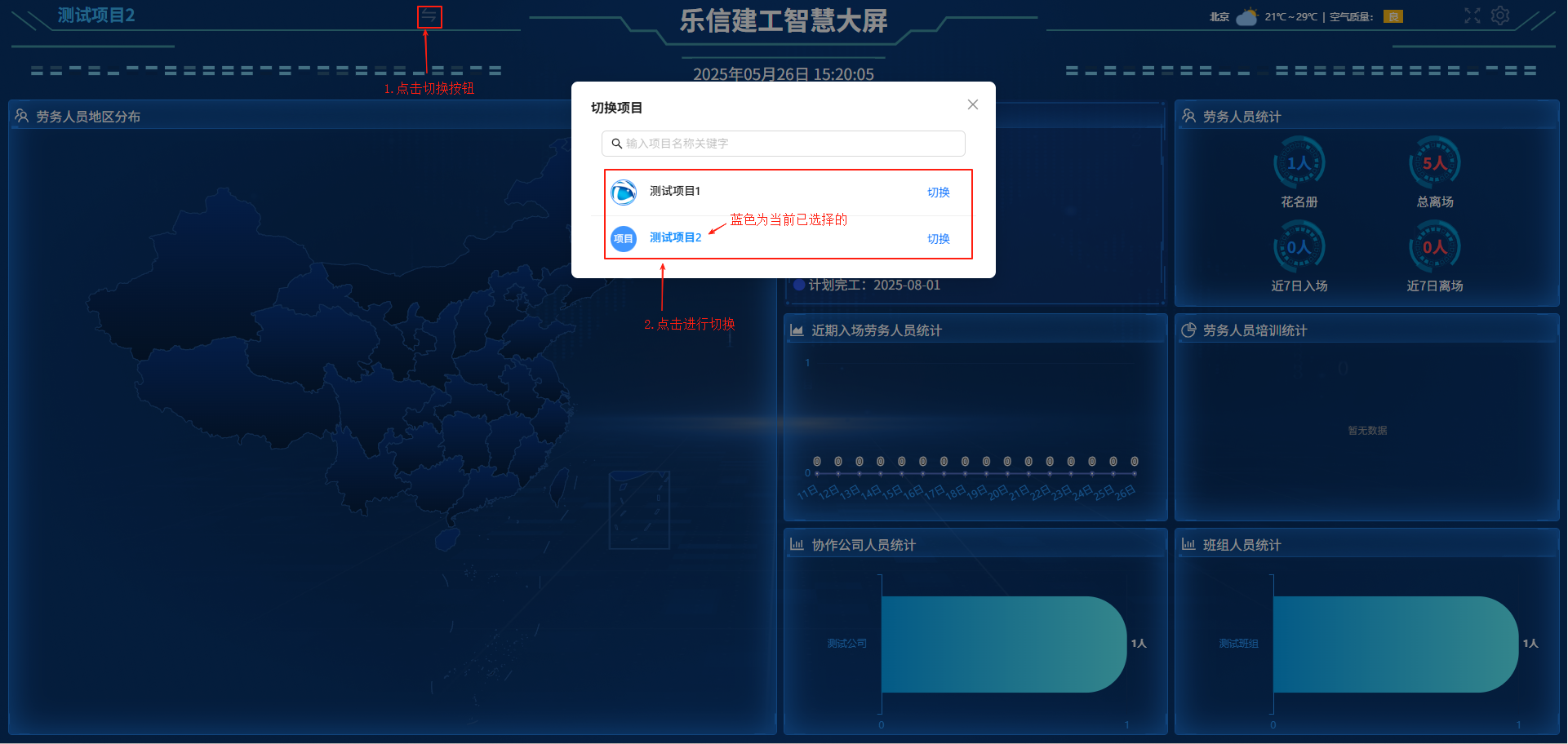 当用户有多个项目时,可以通过点击左上角组织/项目名旁边的切换按钮进行切换。