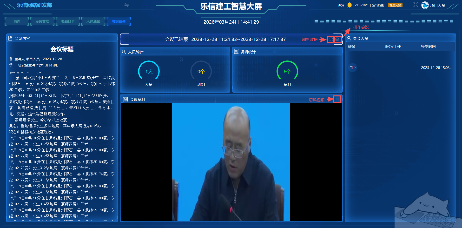 班前宣讲内容,通过人脸机进行签到。