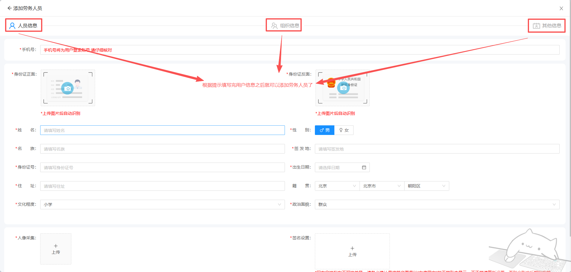 直接添加劳务人员,录入劳务人员信息即可,无需审核。