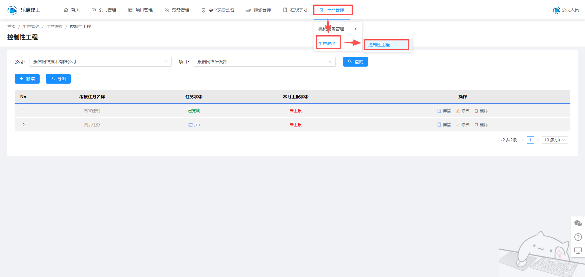 控制性工程是指在生产过程中,需要严格控制的工程。例如,生产一个产品,需要严格控制产品的质量、数量、时间等。公司级人员发布任务,项目级人员负责执行任务。项目级人员需要严格遵守任务要求.