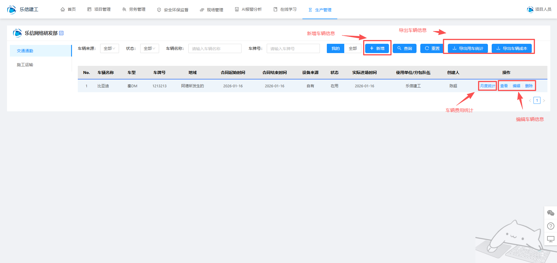 车辆管理是指车辆的基本信息管理,包括车辆信息、车辆状态、车辆费用等信息。包含:
