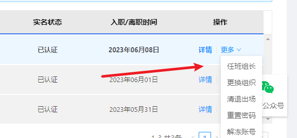 点击详情可查看劳务人员详情--包含人员信息、教育档案、实名信息、银行卡、门禁授权等。 点击更多可对劳务人员进行一系列操作