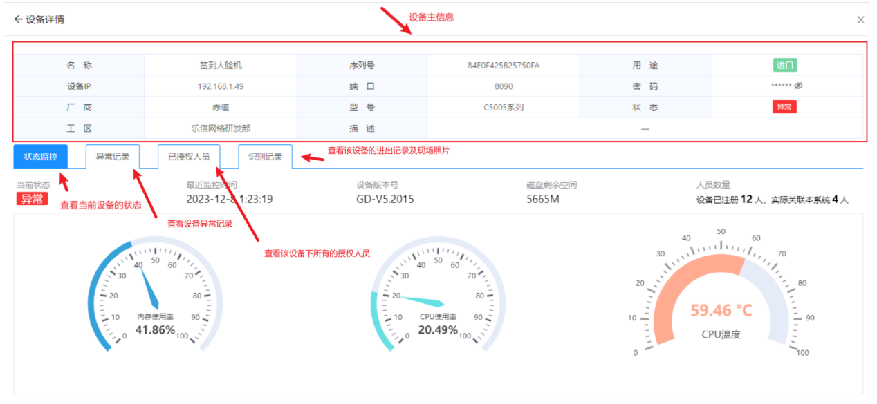 点击设备详情后,查看设备详细信息