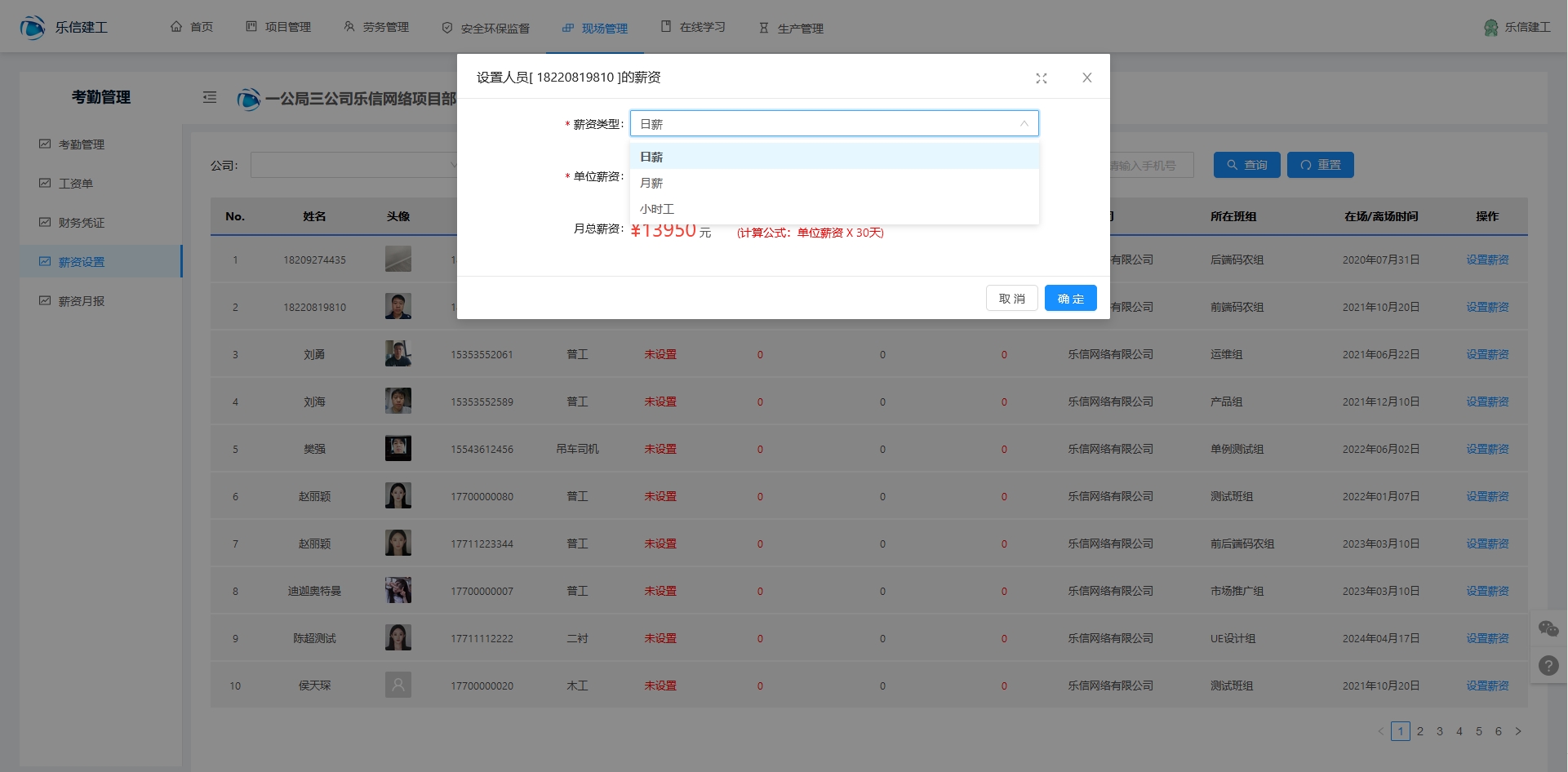 根据薪资类型设置薪资